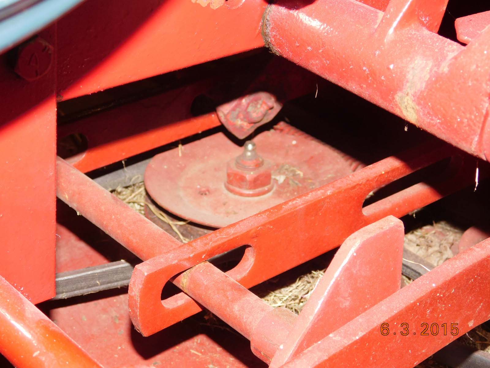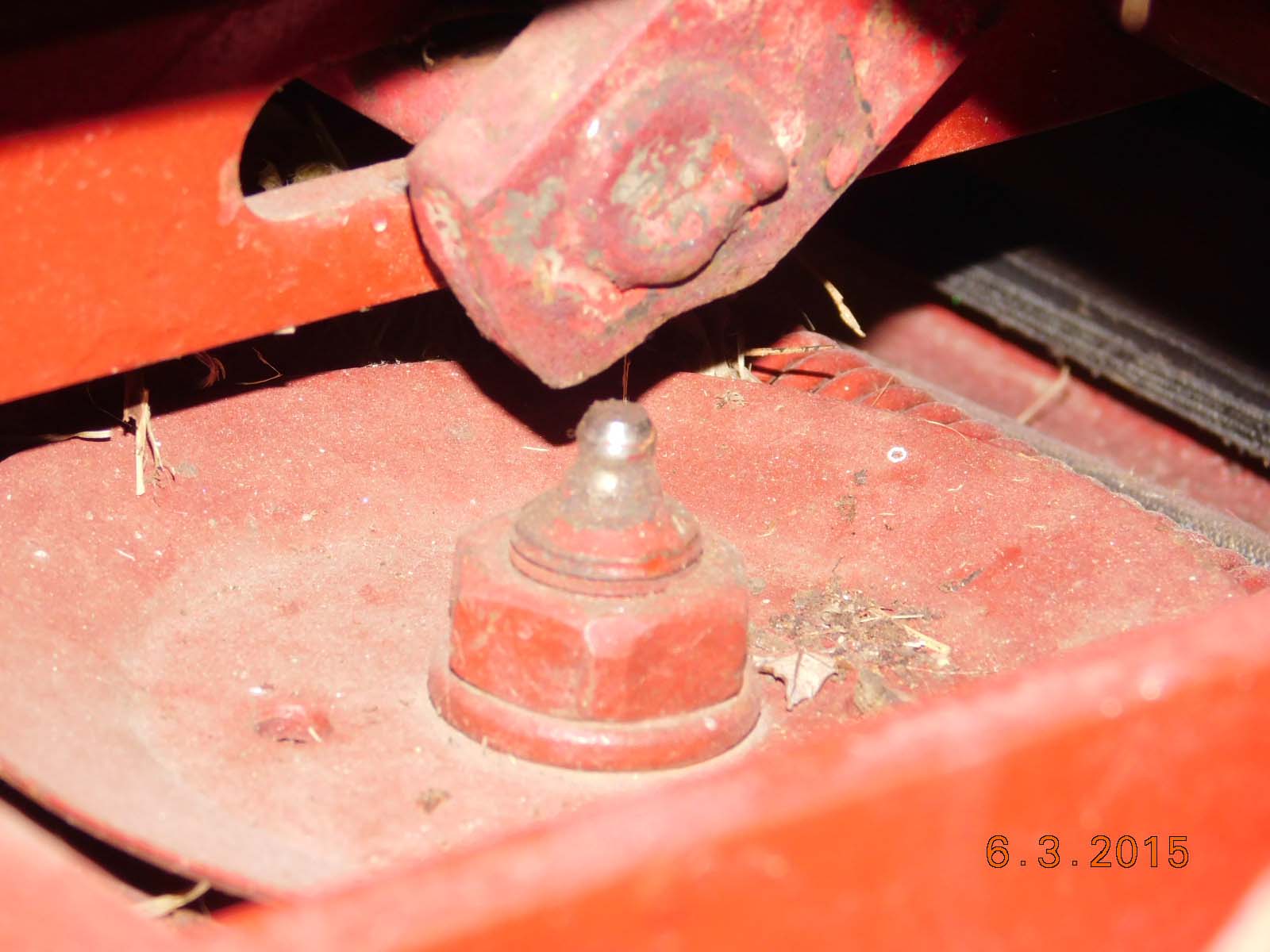 So I decided to move the deck to my 88 520H that is running and looking decent. I had a 42"RD on it that I never liked. Anyway, I swapped the decks and started the engine. Everything sounded OK until I used the hydraulics to lift the deck, that's when the sparks started to fly. I dropped the lift and tried to mow a bit just to test it. Then I took a close look, The grease zerk on the center spindle is gone and the treads on the top of spindle shaft are bozo'd. The lift bar was hitting the center spindle. Something is clearly not right here.
